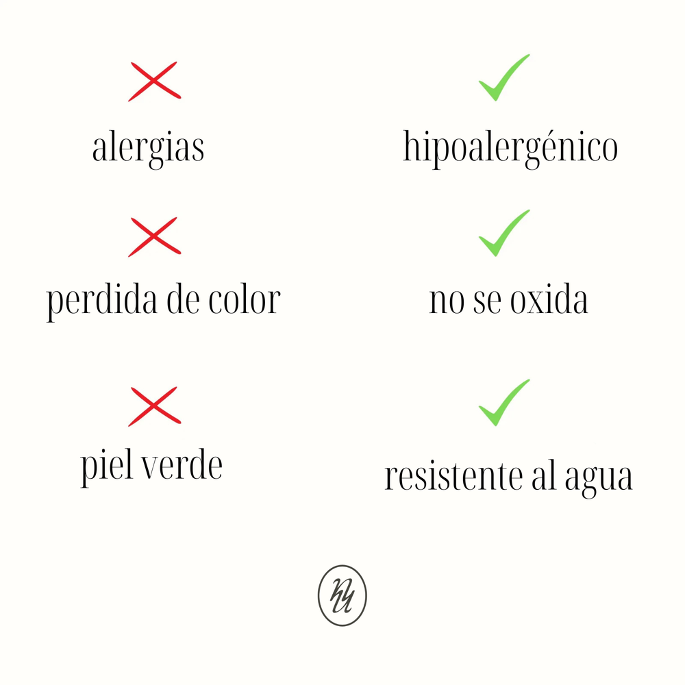 A prueba de agua y sudor. No se oscurece, no se oxida.