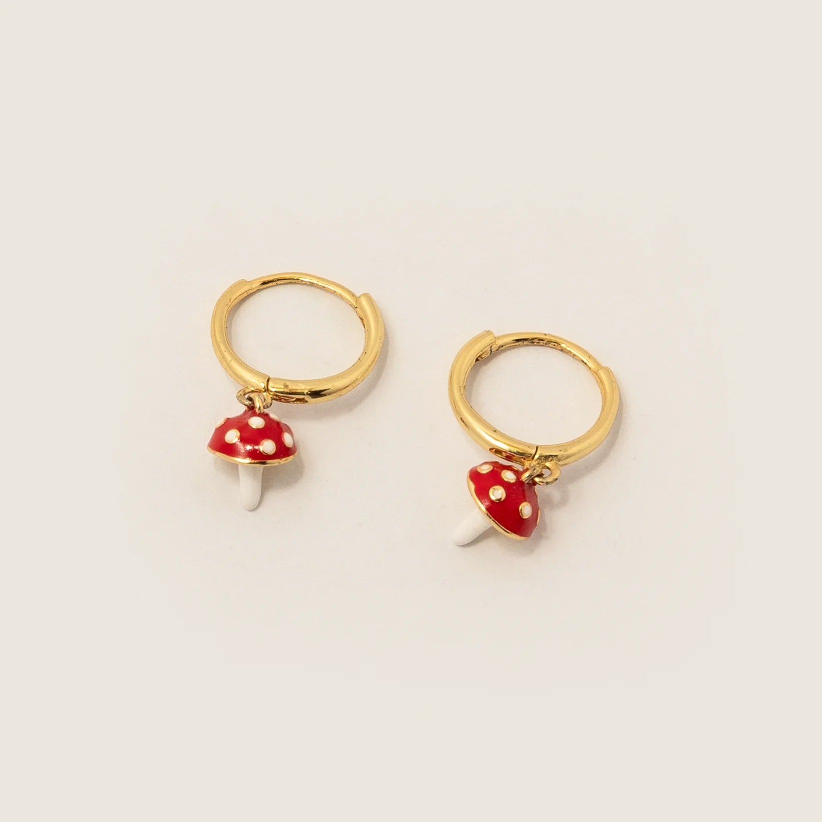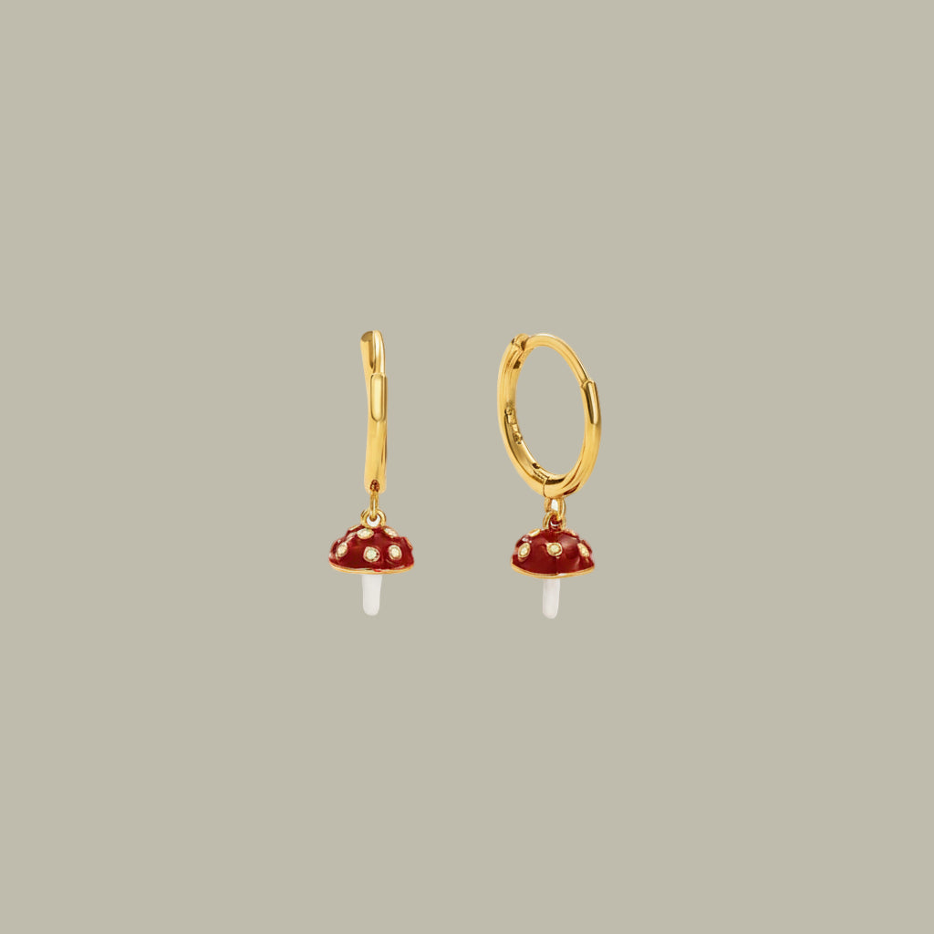 Estos aritos en forma de hongo están hechos de plata 925 bañados en oro 18K. Su cierre tipo bisagra hace que sean fáciles de abrir y cerrar, lo que los convierte en la opción perfecta para añadir un toque de estilo a tu look diario.